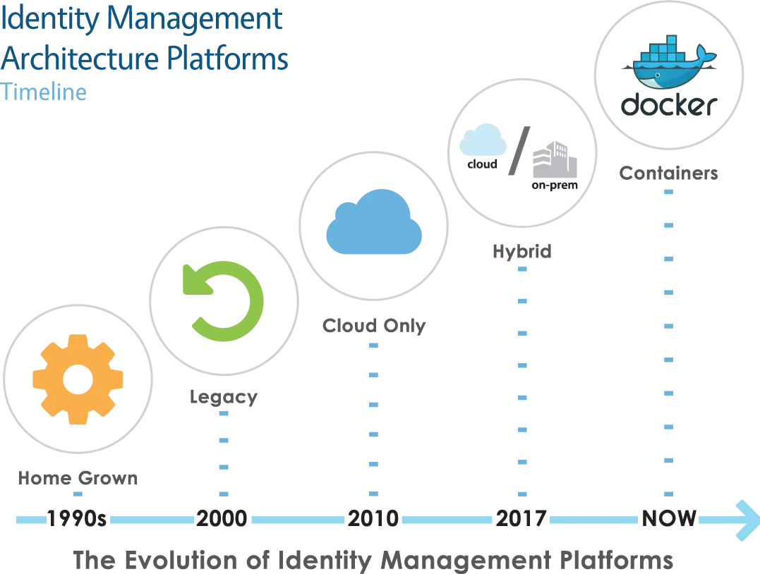 Outdated architecture. It’s the root of the problems that plague identity management platforms. By leveraging the latest Docker container technology our solutions are cloud agnostic and unlike cloud-only solution providers, each customer receives their own independently secured identity platform.