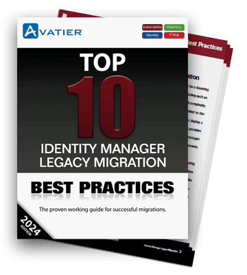 Start your migration from legacy software with the Top 10 Identity Manager Migration Best Practices Workbook. Use this workbook to think through your information security risk before you transition to next generation identity manager software.